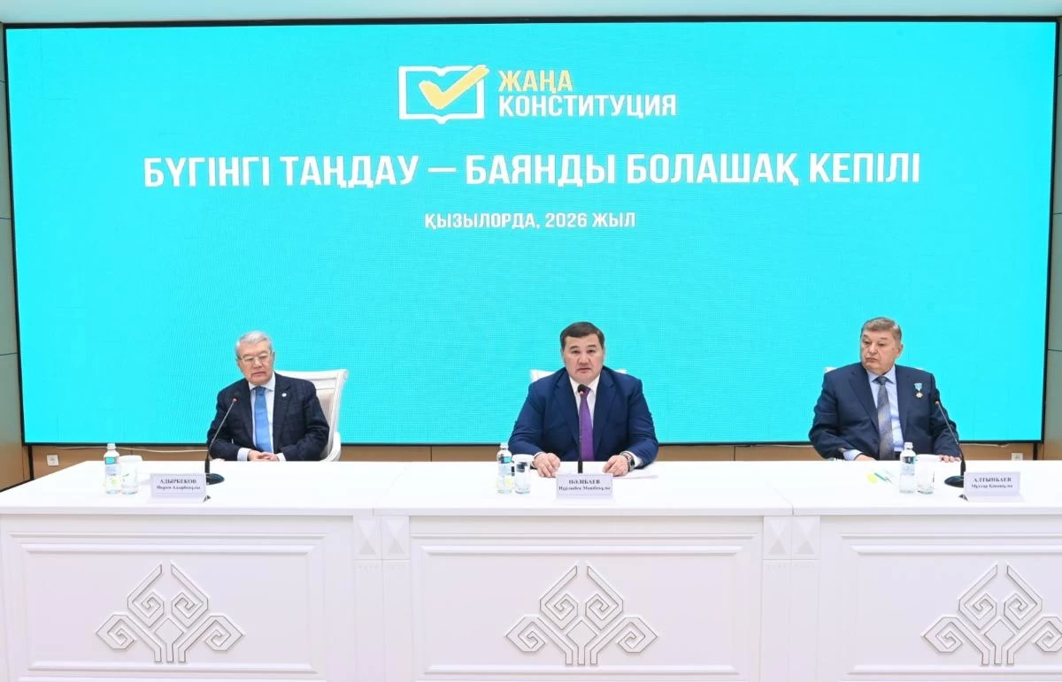 "Президентіміздің Жарлығымен 21 қаңтарда Ата Заңымызға өзгерістер енгізуге қатысты ұсыныстарды тұжырымдайтын Конституциялық реформалар жөніндегі комиссия құрылды. Комиссияның қорытынды шешімінің нәтижесімен Мемлекет басшымыз 2026 жылғы 15 наурызда республикалық референдум өткізу жөнінде Жарлыққа қол қойды. Конституция жобасында Ұлы Даланың мыңжылдық тарихының сабақтастығы сақталып, мемлекеттің унитарлы сипаты мен шекарасына, аумақтық тұтастығына қол сұғуға болмайтыны нақтыланған. Елдігіміздің басты нышаны саналатын жаңа құжатта "Адам мемлекет үшін емес, мемлекет адам үшін" қағидаты айқындалған. Президентіміздің бастамасымен қолға алынған саяси науқандар мен реформаларды жүзеге асыруда Сыр жұртшылығы береке-бірліктің, тату тірліктің үлгісін көрсетіп келеді. Мемлекет басшымыз Қасым-Жомарт Кемелұлы Сыр бойында өткен Ұлттық құрылтайда: "Соңғы жылдары Қызылорда облысы заман талабына сай өсіп-өркендеп жатыр", – деп ерекше атап өтіп, атқарылған жұмыстарға оң бағасын берді. Алдағы уақытқа да Сыр өңірінің әлеуметтік-экономикалық жағдайын жақсартуға, сәулеттік келбетін жаңартуға, заманауи ғимараттардың бой көтеруіне бағытталған жаңа жобалар жоспарланған. Бұл бастамалар ардагерлеріміздің ақыл-кеңесімен, тұрғындарымыздың сұранысына сәйкес іске асуда. Еліміздің тұрақты дамуы мен халықтың бірлігін сақтауда ардақты ардагерлеріміздің орны ерекше", – деді Н.Нәлібаев.